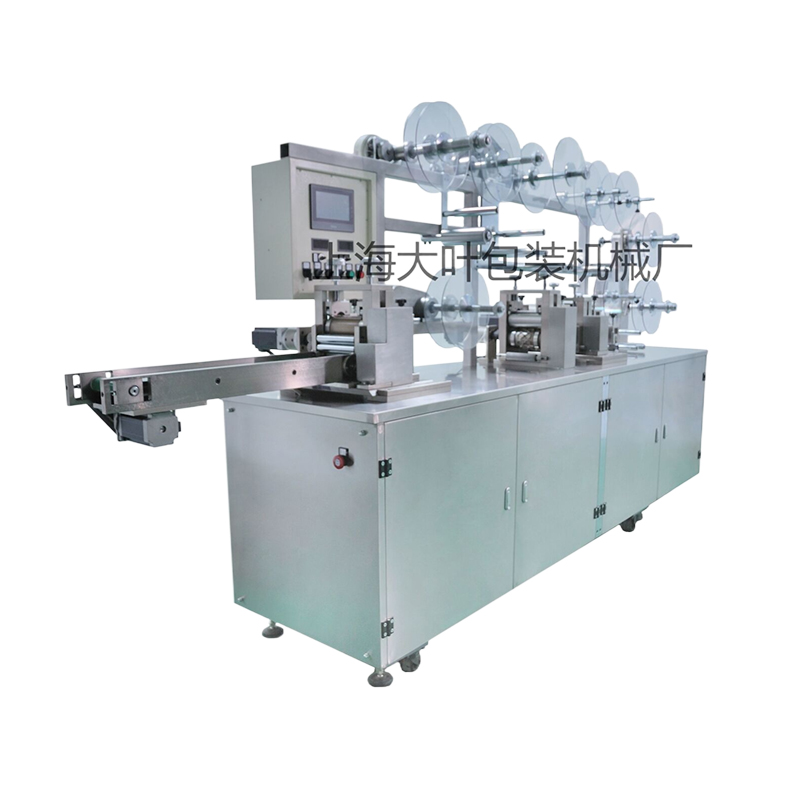 Uncoiling—— adhesive plaster peeling—— adding absorbent pad(∮16mm)—— covering with release paper—— infusion bottle sticker positioning hobbing(∮28mm semi-cutting)—— product contiguous cutting off(hobbing)—— conveyor contiguous infusion bottle sticker step by counting output.
